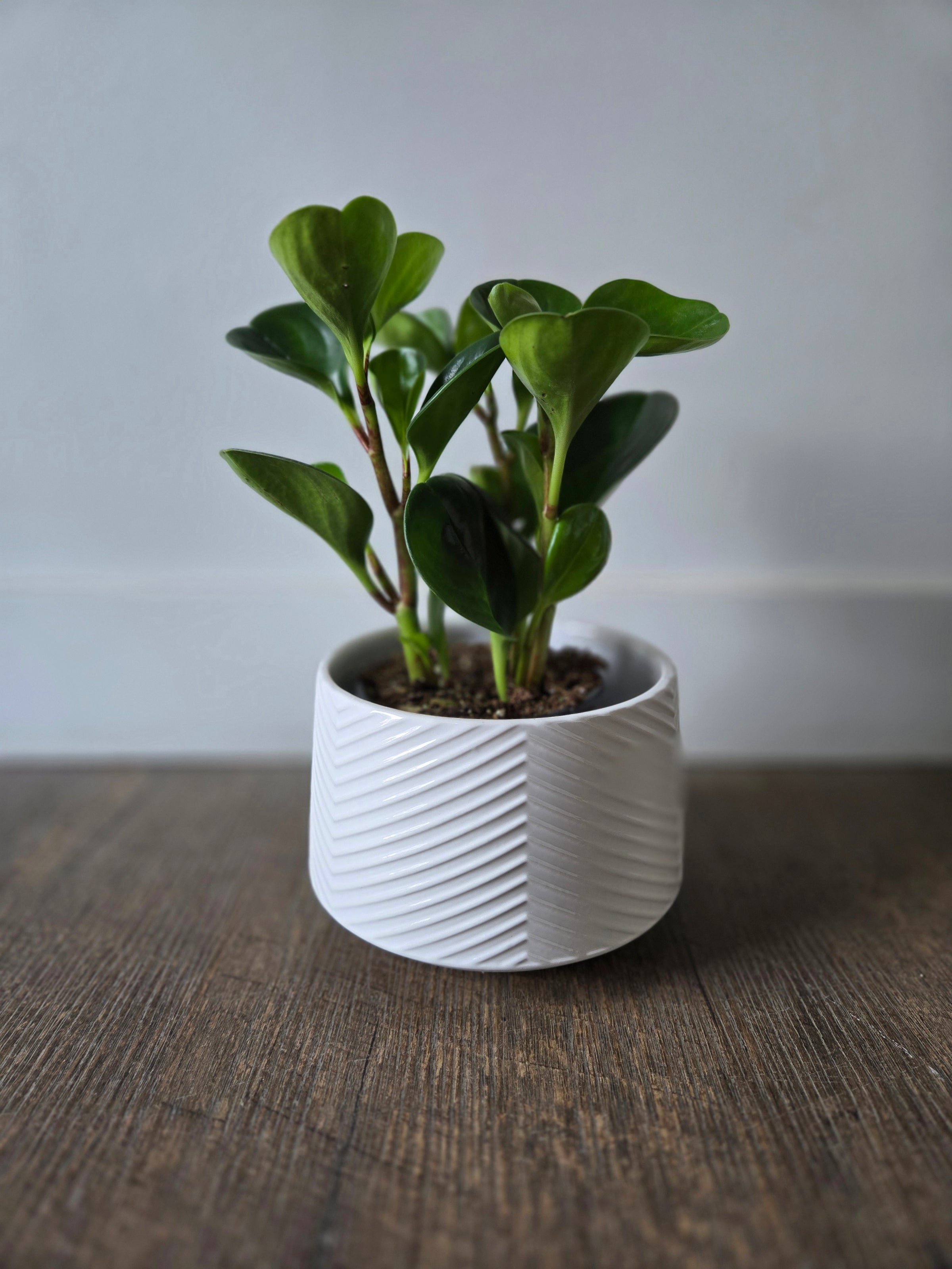 The Celeste pot has a charming white glaze chevron pattern and adds a touch of style to your plants or floral arrangements. Measuring 5 inches wide and 4 inches tall, it's the perfect size for any space.