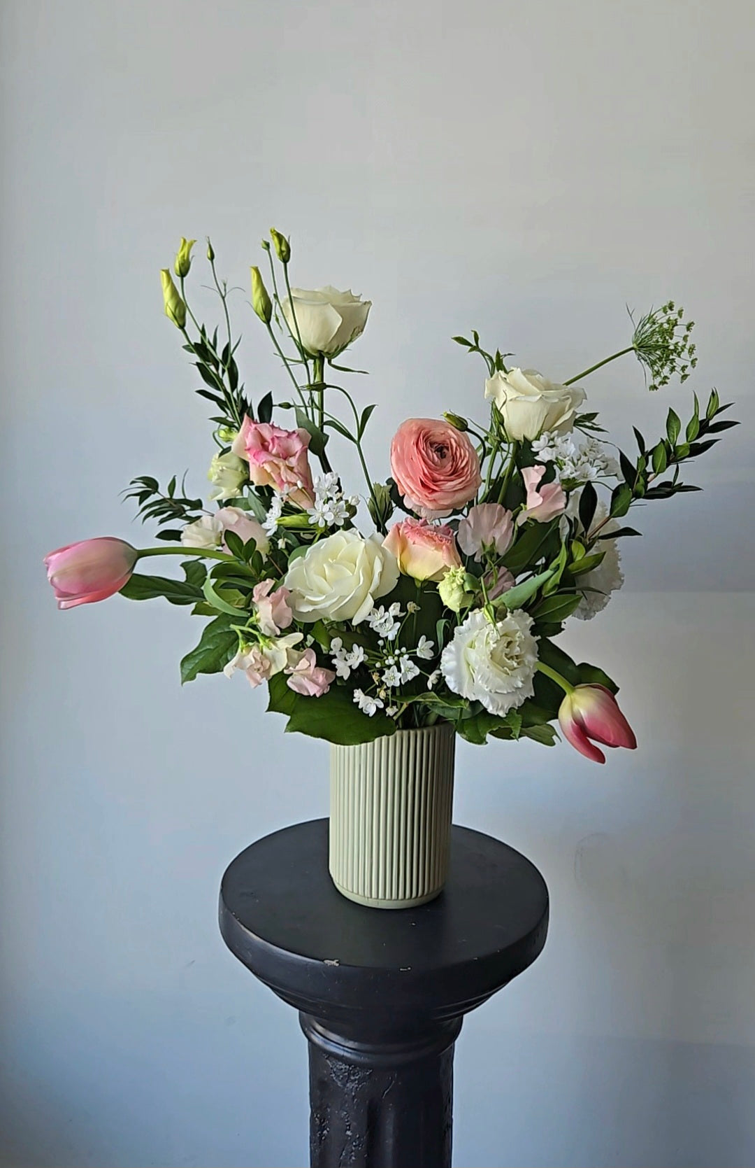 Green Ribbed Vase Arrangement